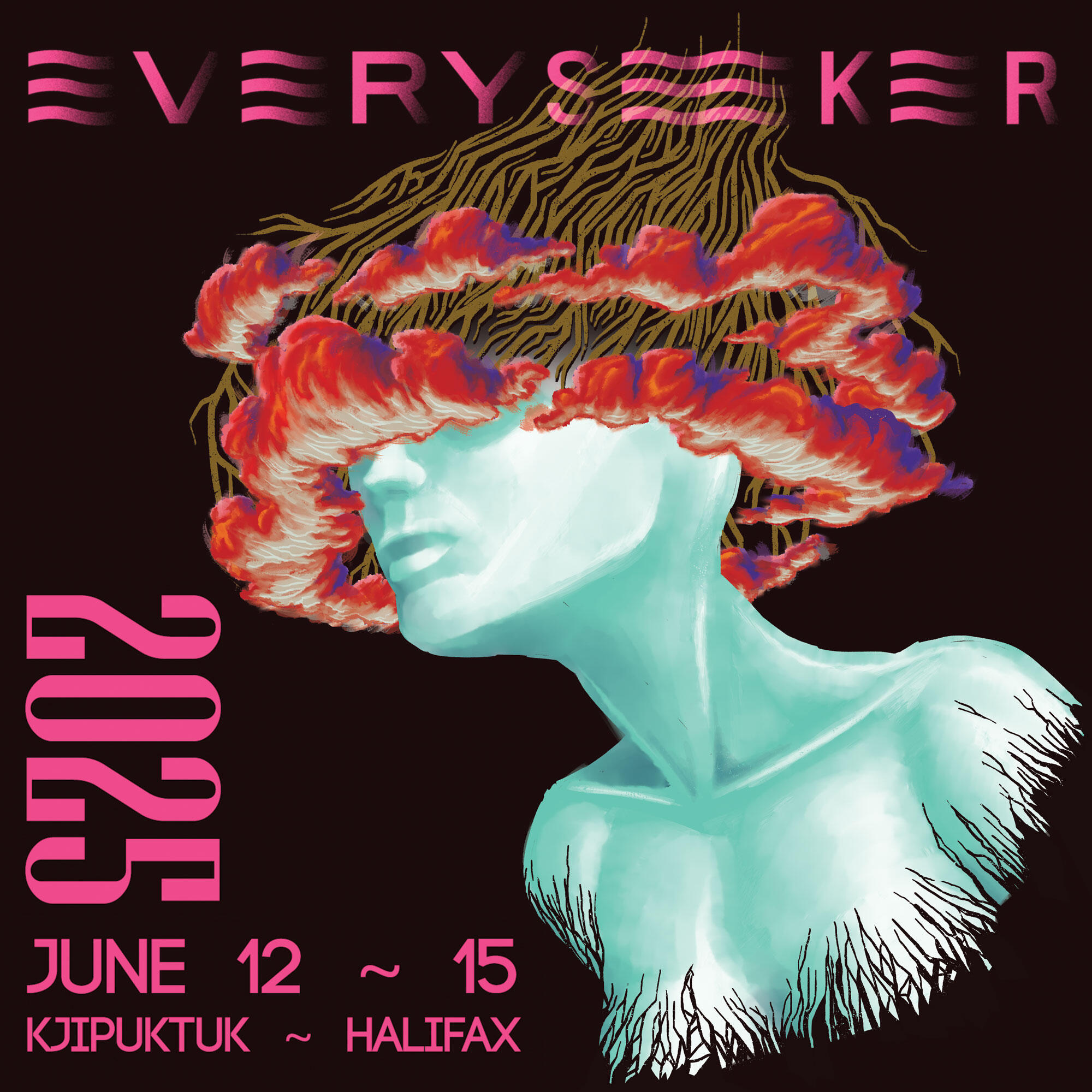 It's Official - I'm the graphic and stage designer for the 2025 EVERYSEEKER Music and Arts Festival in Halifax/Kjipuktuk!EVERYSEEKER is an annual celebration of genre-fluid music and experimental sound. We aim to create accessible entry points to the weird, wonderful, and delicious sonic landscapes of Kjipuktuk and beyond. We believe in curating works that encourage curiosity and showcase artists who challenge and subvert industry norms - highlighting the underground, the revolutionary, the emergent, and fringe dreamers.Click the link to learn more.